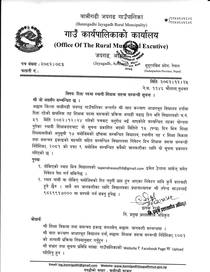 info@bannigadhijaygadhmun.gov.np / log.bannigadhi@gmail.com