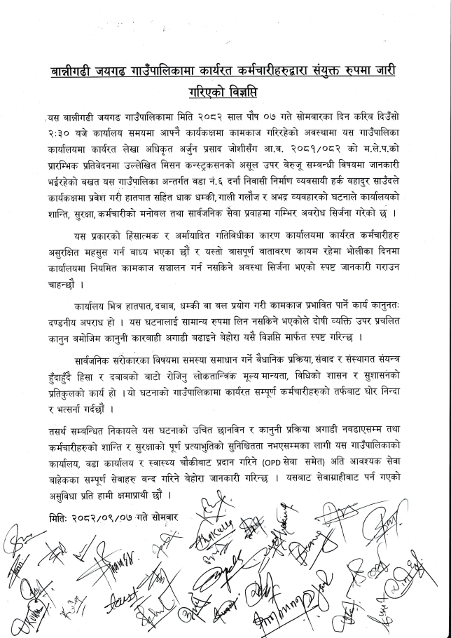 मिति २०८२-०९-११ गते बसेको दशौ कार्यपालिका बैठकका निर्णयहरु