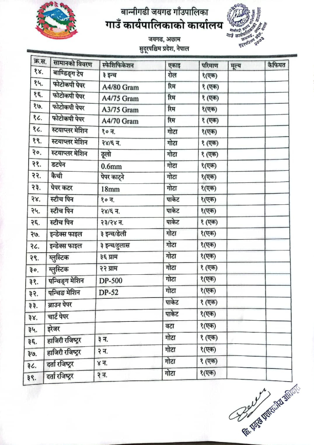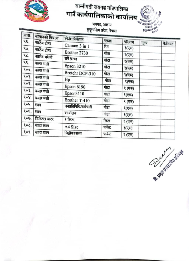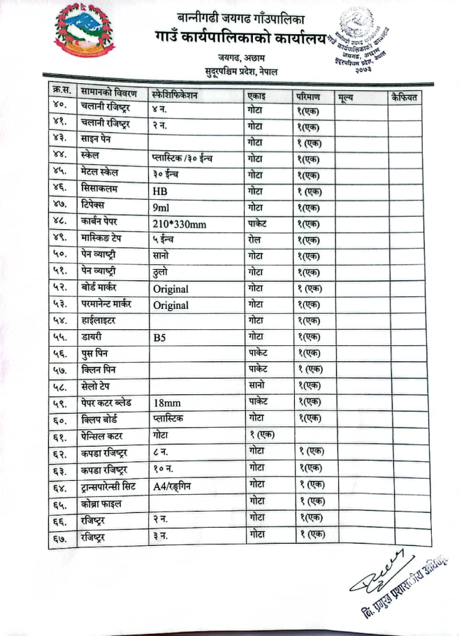 सामग्रीको दर रेट (कोटेशन) पेश गर्ने सम्बन्धी सूचना |