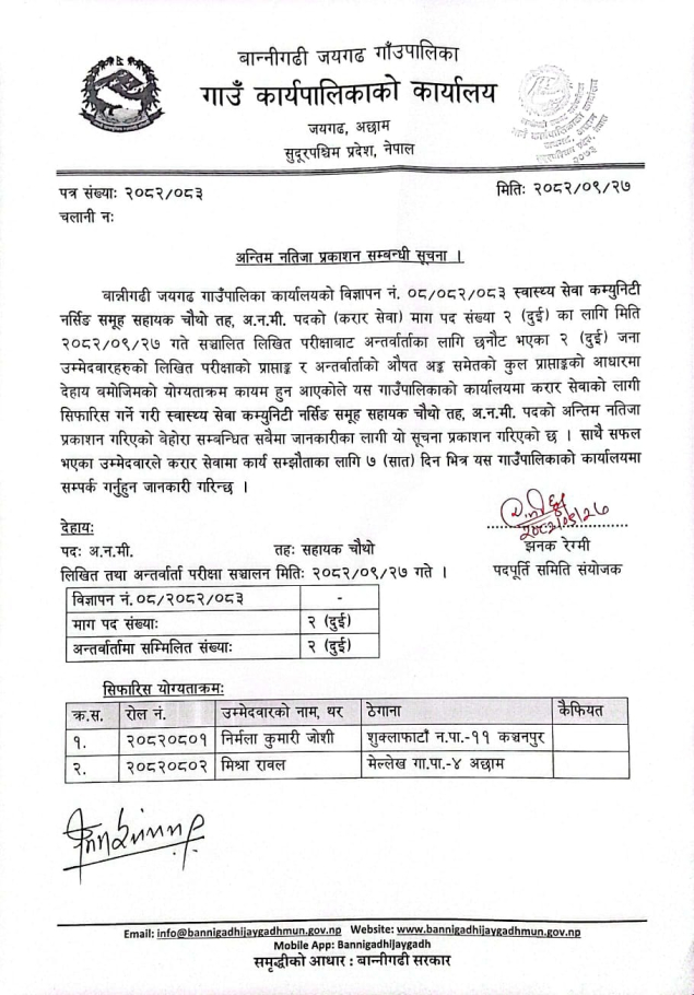 जन स्वास्थ्य अधिकृत पदको अन्तिम नतिजा प्रकाशन सम्बन्धमा सूचना |
