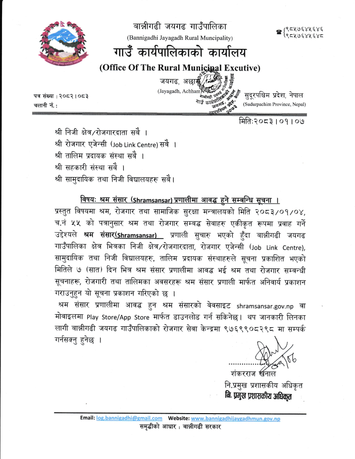 info@bannigadhijaygadhmun.gov.np / log.bannigadhi@gmail.com