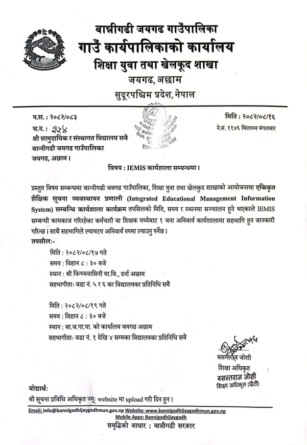 IEMIS कार्यशालामा सहभागी सम्बन्धमा |
