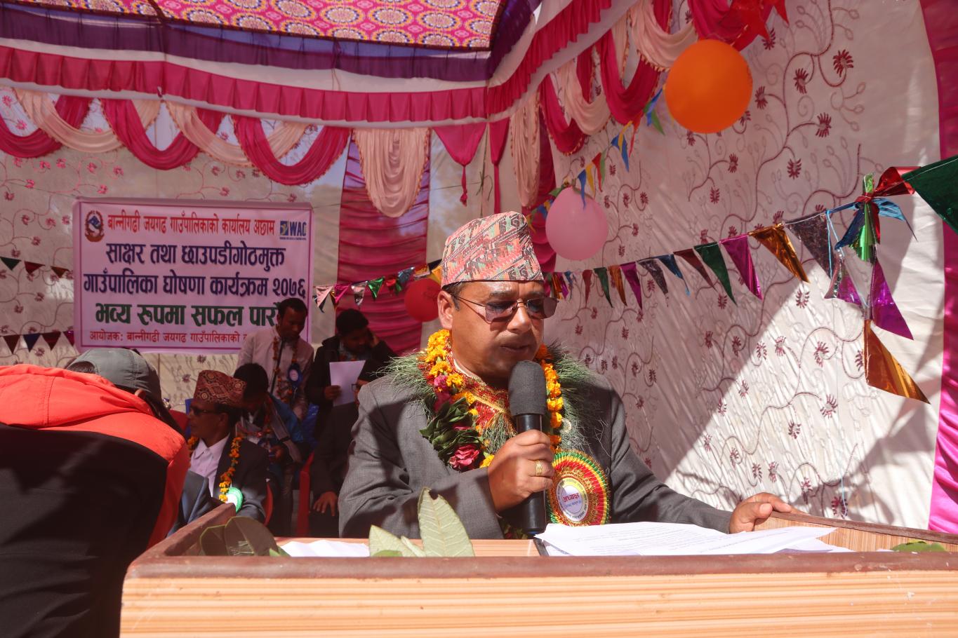 साक्षर गाउँपालिका र छाउपडी गोठ मुक्त घोषणा